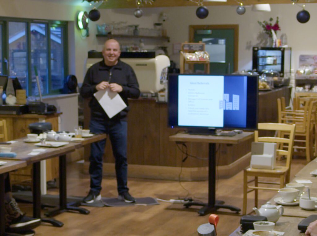 It was Dave Roberts this week who, with the aid of a TV screen illustrated the extent of his business. Highlight for some of us was that he had been involved in changing all the Lamp Posts in Lakeside Retail Park. It was a comprehensive and helpful review for members. From Battery Storage Systems to Fuse Boards it was all there to see. Very effective!!